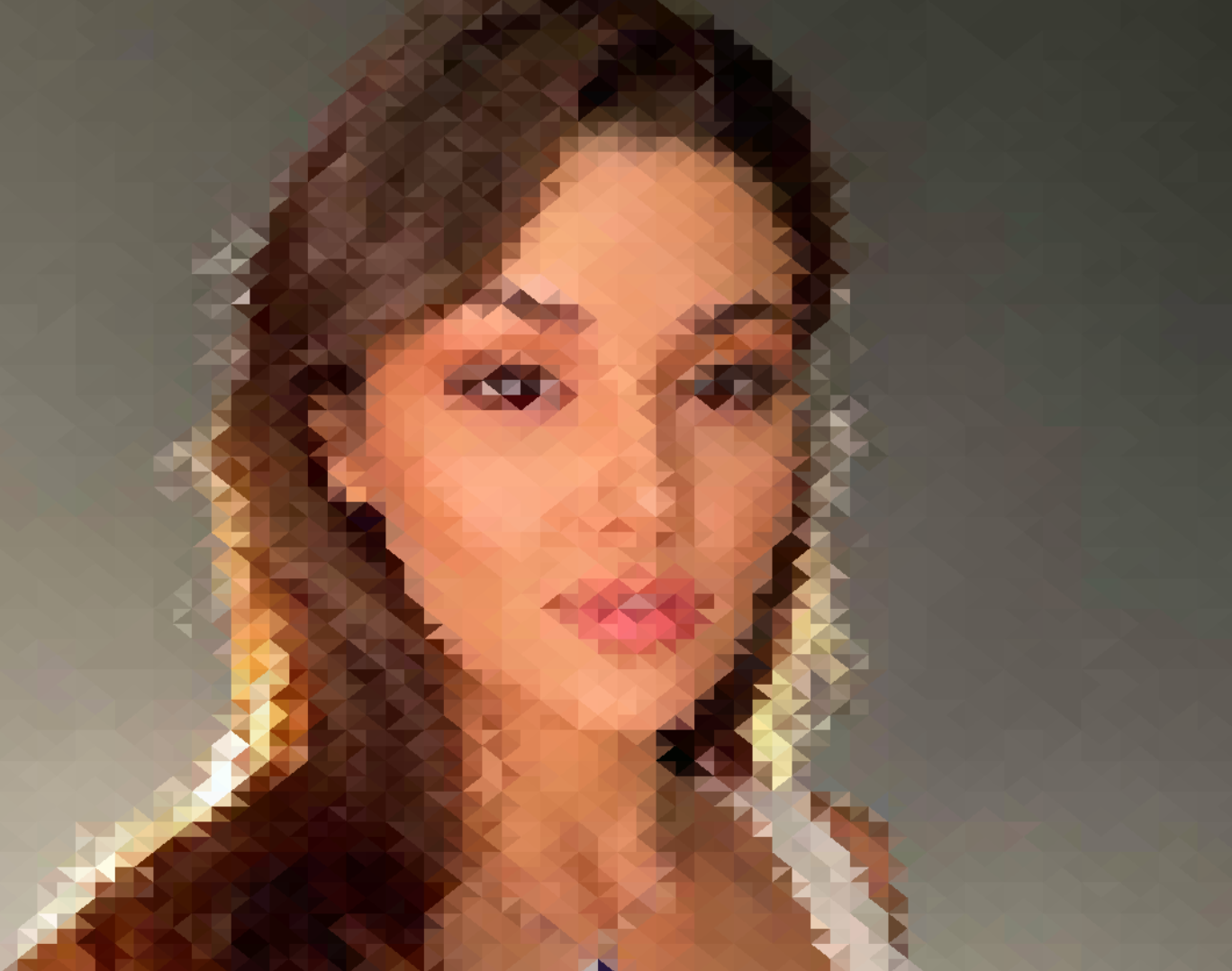 I’m actually really pleased with how well this project turned out. I wasn’t sure if I would be able to pull it off or if the results would end up looking good. Some early results (shown to the right) had me pessimistic that my algorithm would even work. But after weeks of fine-tuning the code and trying different computations, I think the results are pretty cool! On the last page, I show the same image simplified with 5,000 triangles twice. The first one is a naive approach where we uniformly place triangles over the image and sample each triangle at its centroid for its color. The second one is using my fully functioning algorithm. I think it has a really nice balance of keeping the details we care about (the hair and the eyes) while still keeping the background simple and artistic.